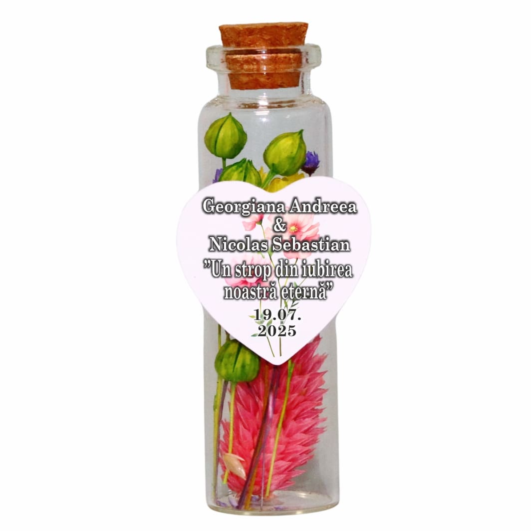 Marturie de Nunta, Personalizata, Flori Uscate, Roz, MFN001