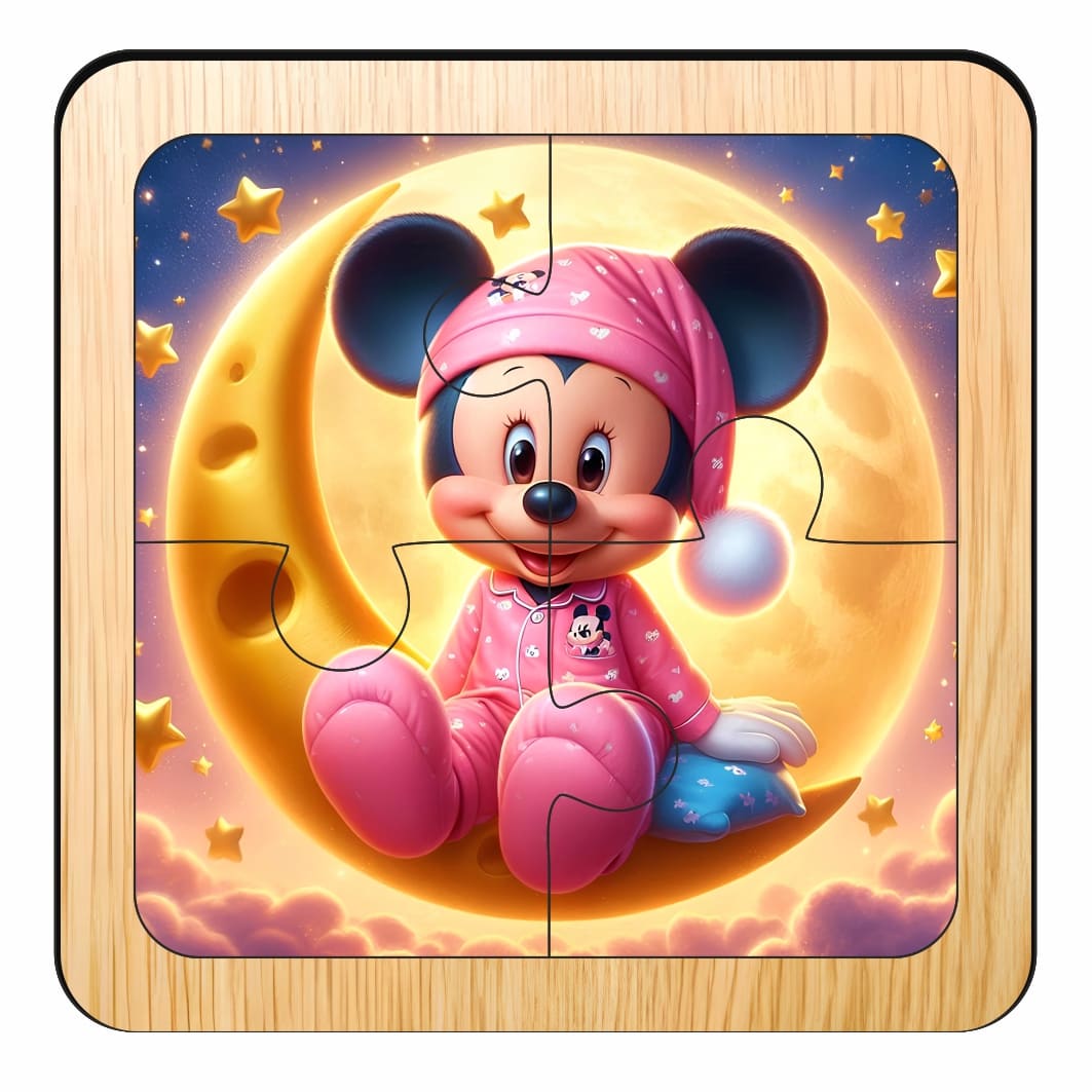 Puzzle din lemn, Minnie Mouse, 4 piese, Multicolor, 10×10 cm, PDUV102
