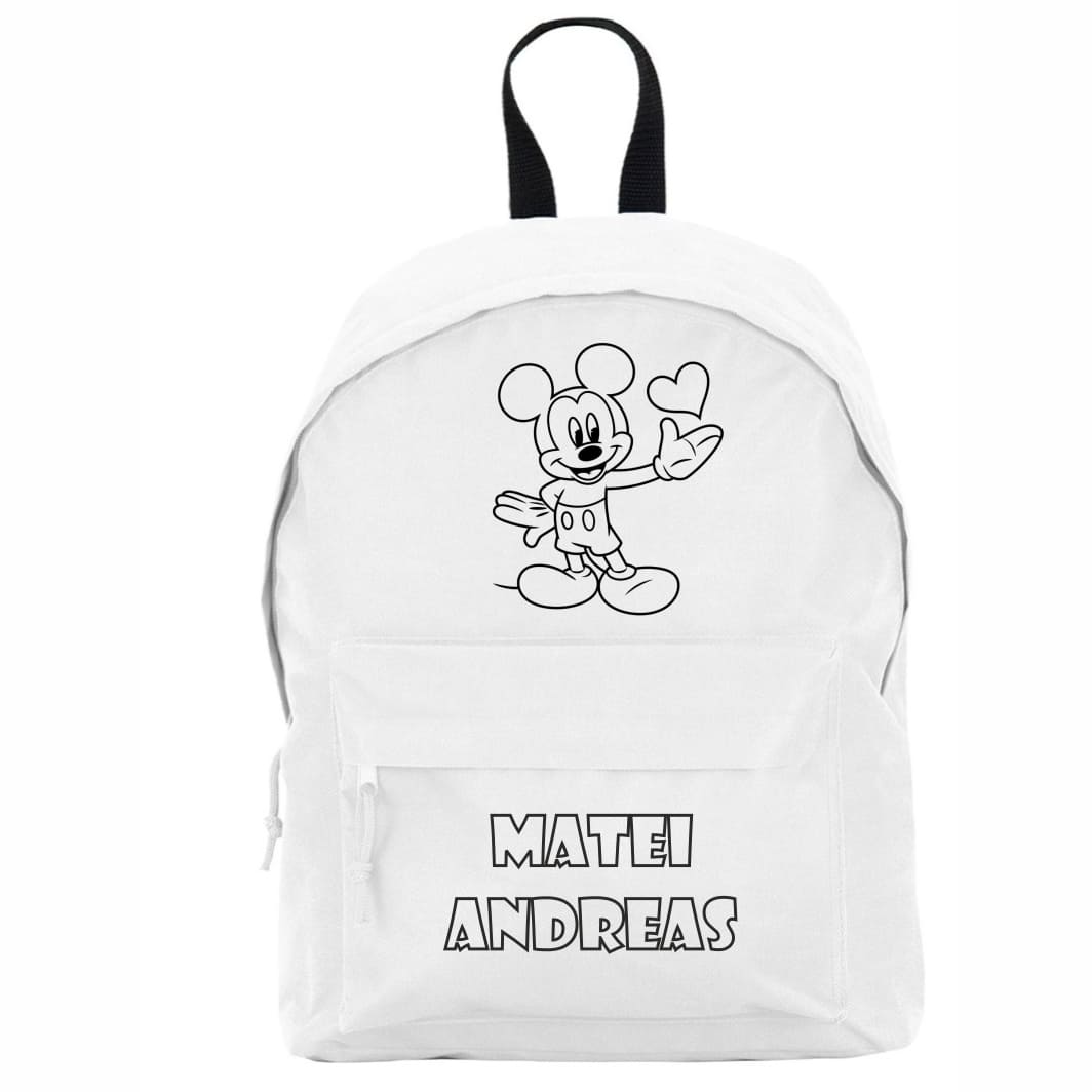 Ghiozdan personalizat cu nume, Scoala, Mickey Mouse, 38×28 cm, Alb, GS001