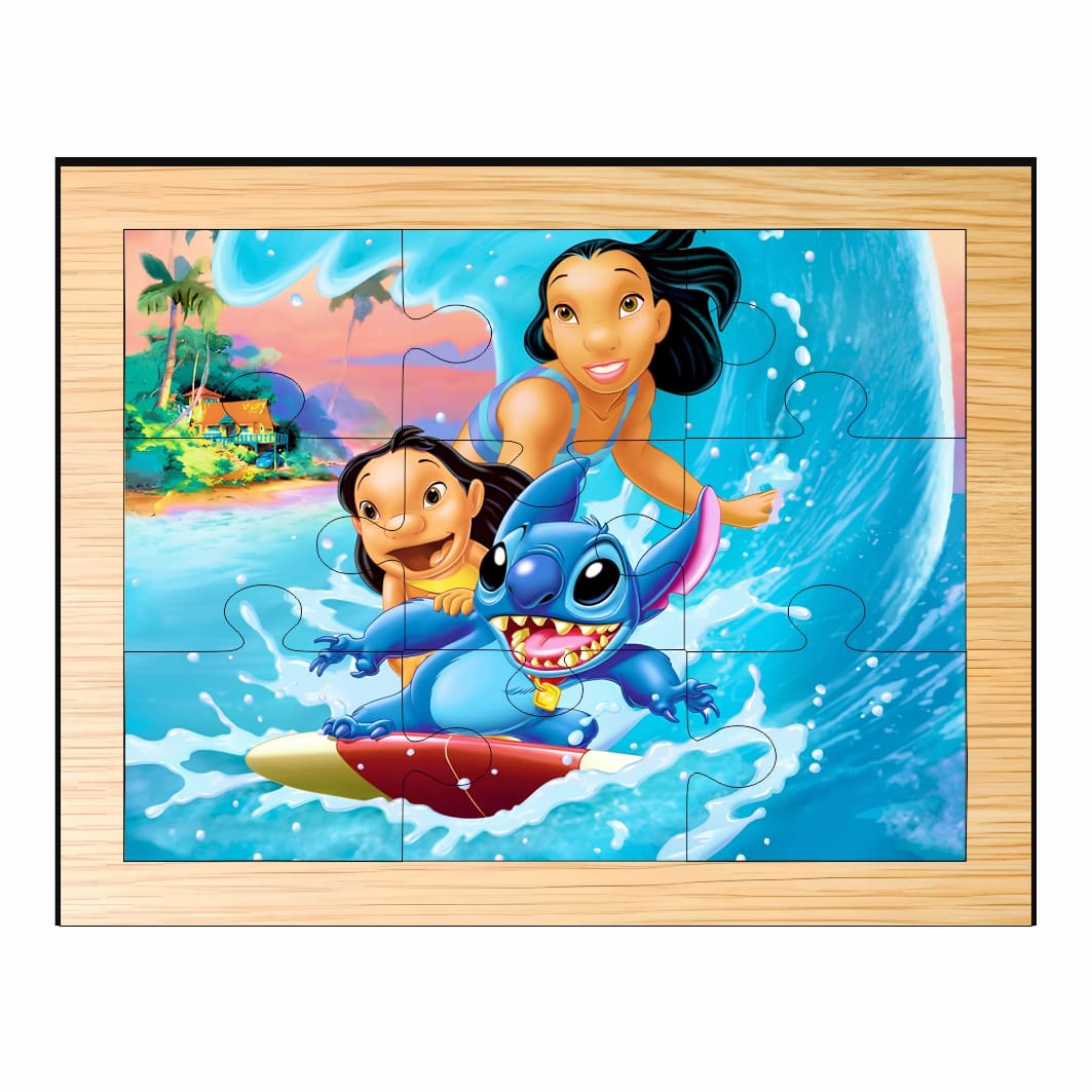Puzzle din lemn, Stitch, 9 piese, Multicolor, 15×12 cm, PDUV004