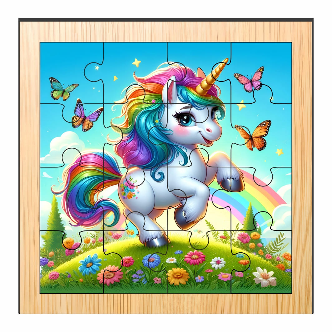 Puzzle din lemn, Unicorn, 16 piese, Multicolor, 17×17 cm, PDUV013