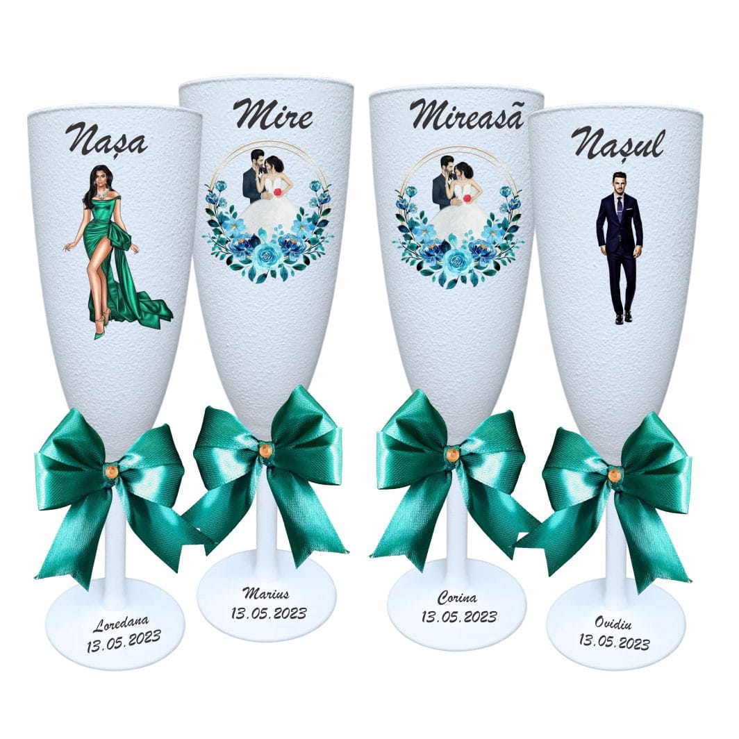 Set 4 Pahare Personalizate, Nunta, Miri, Nasi, Alb, PHRP013