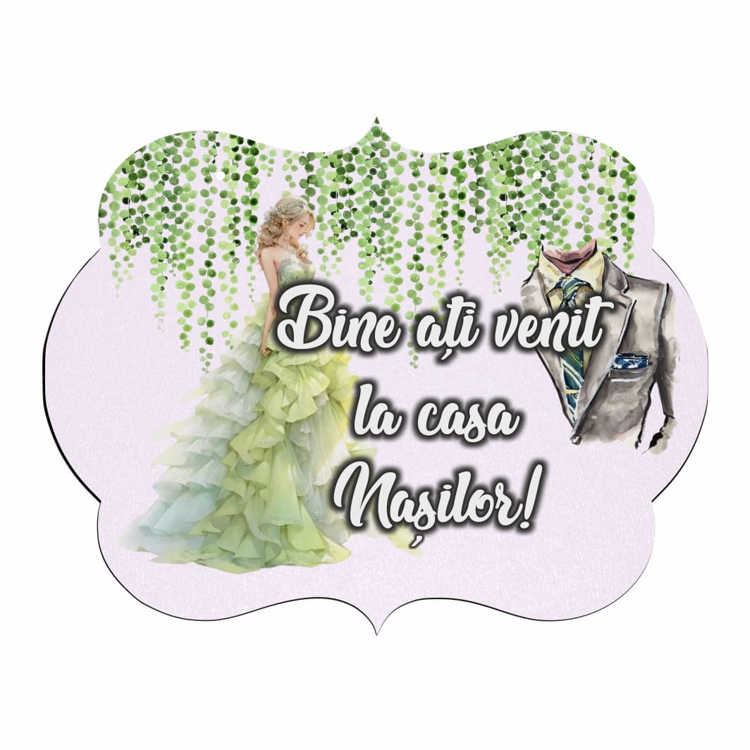 Pancarta Bine Ati Venit la casa Nasilor, Nunta, Verde, 40x31cm, PBUV015