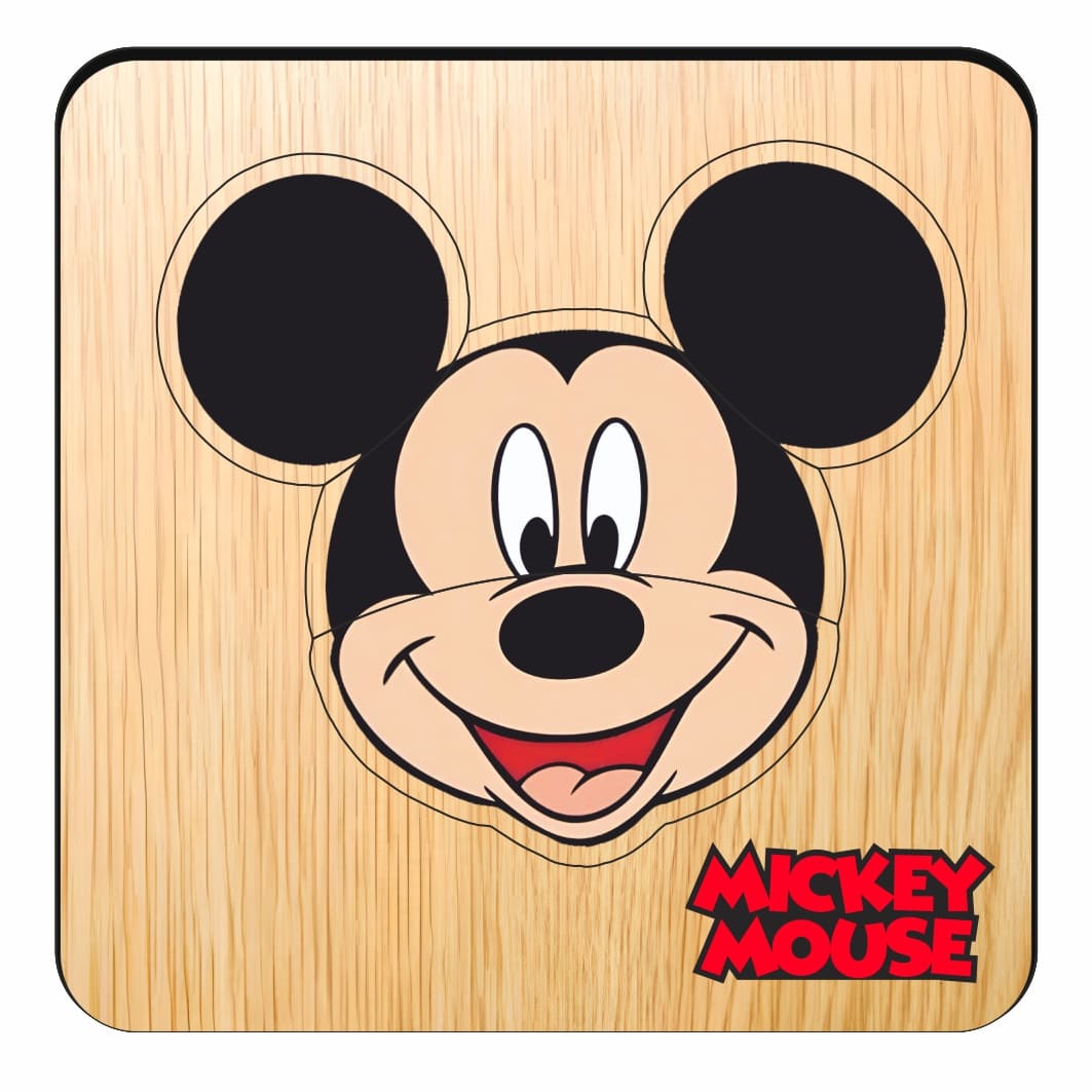 Puzzle din lemn, Mickey Mouse, Incastru, 4 piese, Multicolor, 12×12 cm, PDUV125