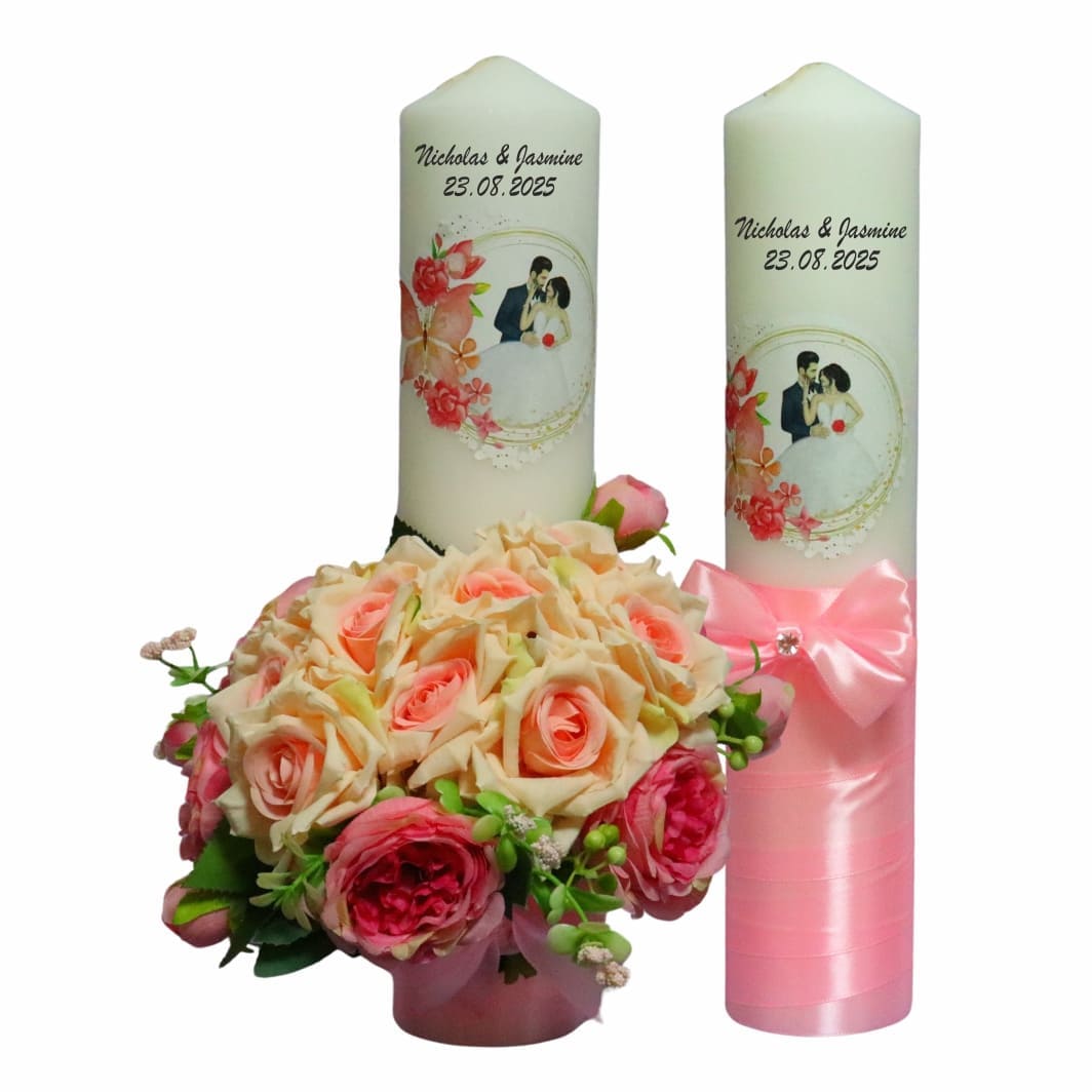 Set Lumanari Nunta, Personalizate, Mire Mireasa, 2 Bucati, Roz, 35 cm, LN009