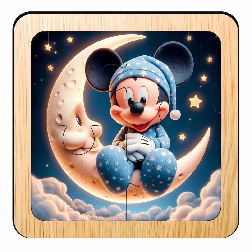 Puzzle din lemn, Mickey Mouse, 4 piese, Multicolor, 10×10 cm, PDUV101