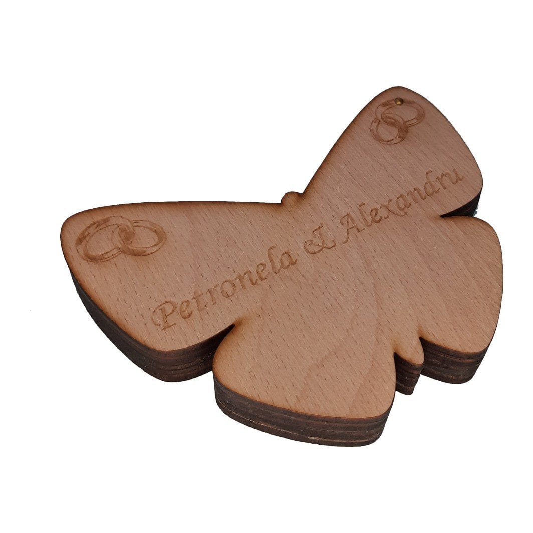 Cutie de verighete, Fluture, Personalizata, Lemn Natur, CTV003