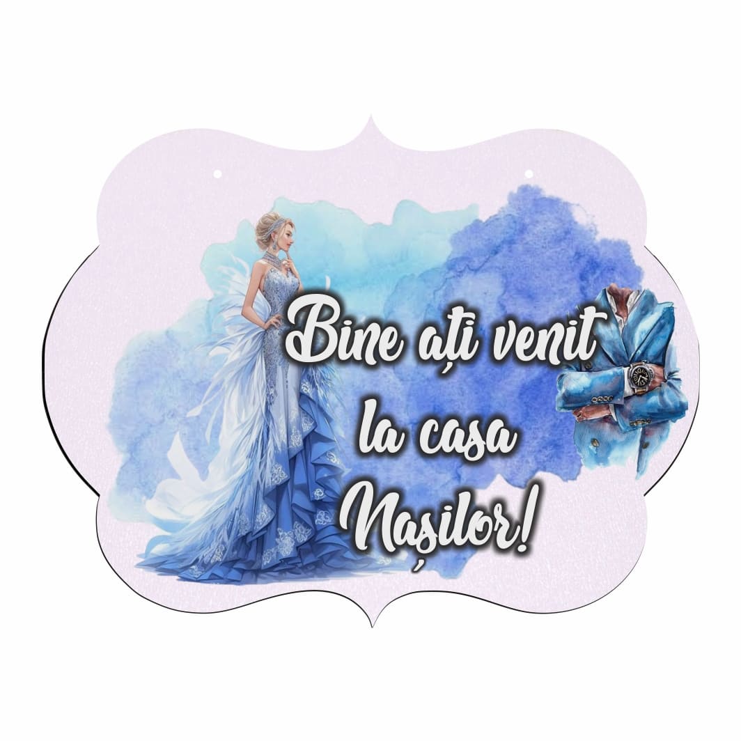 Pancarta Bine Ati Venit la casa Nasilor, Nunta, Albastru, 40x31cm, PBUV018