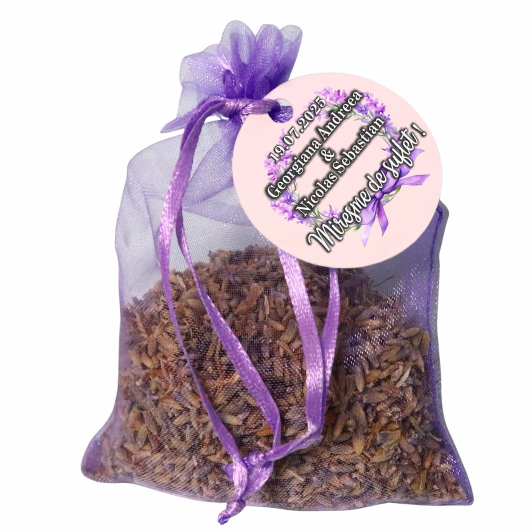 Marturie de nunta, Lavanda, Saculet organza, Mov, Personalizat, MLS002