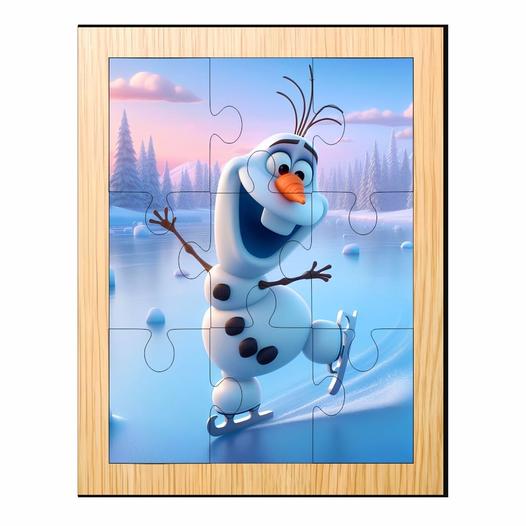 Puzzle din lemn, Olaf, 9 piese, Multicolor, 15×12 cm, PDUV082