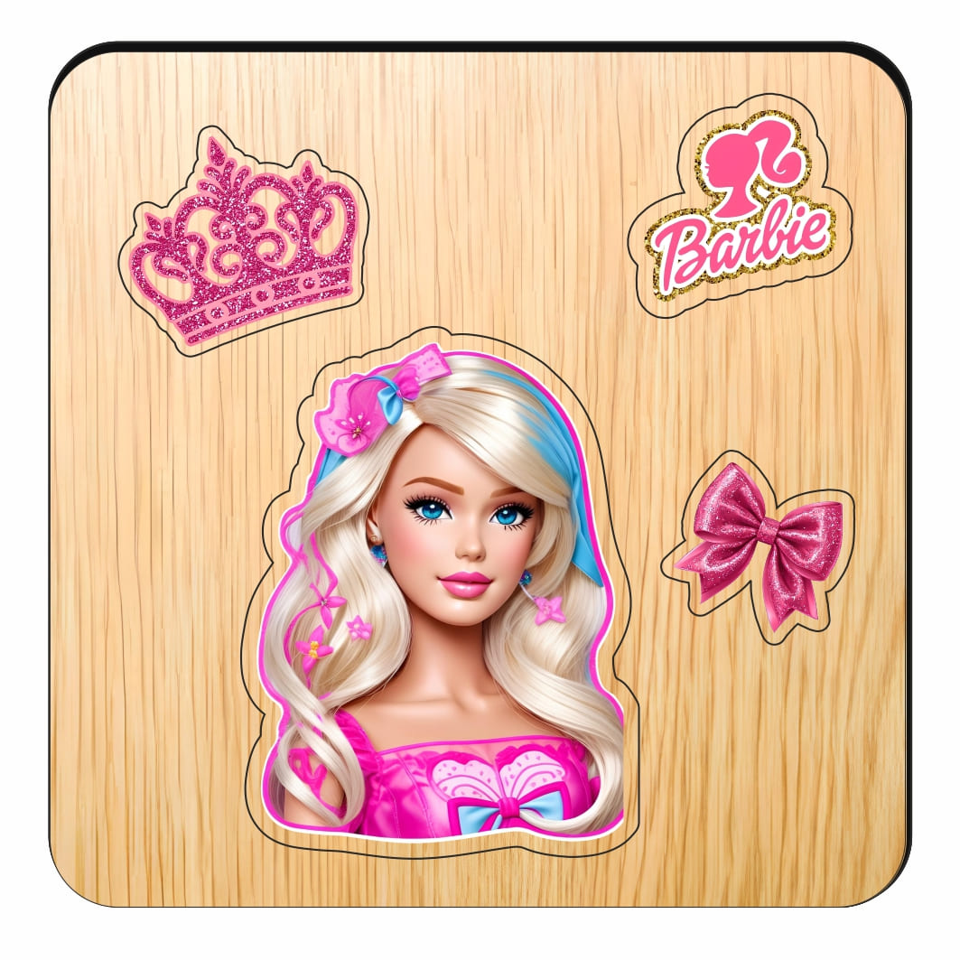 Puzzle din lemn, Barbie, Incastru, 4 piese, Multicolor, 12×12 cm, PDUV119