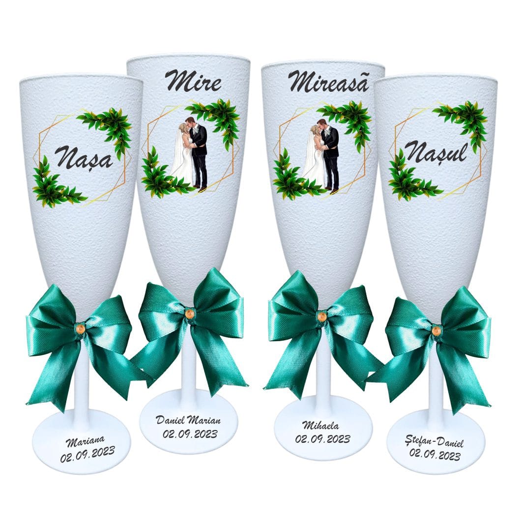 Set 4 Pahare Personalizate, Nunta, Miri, Nasi, Alb, PHRP035
