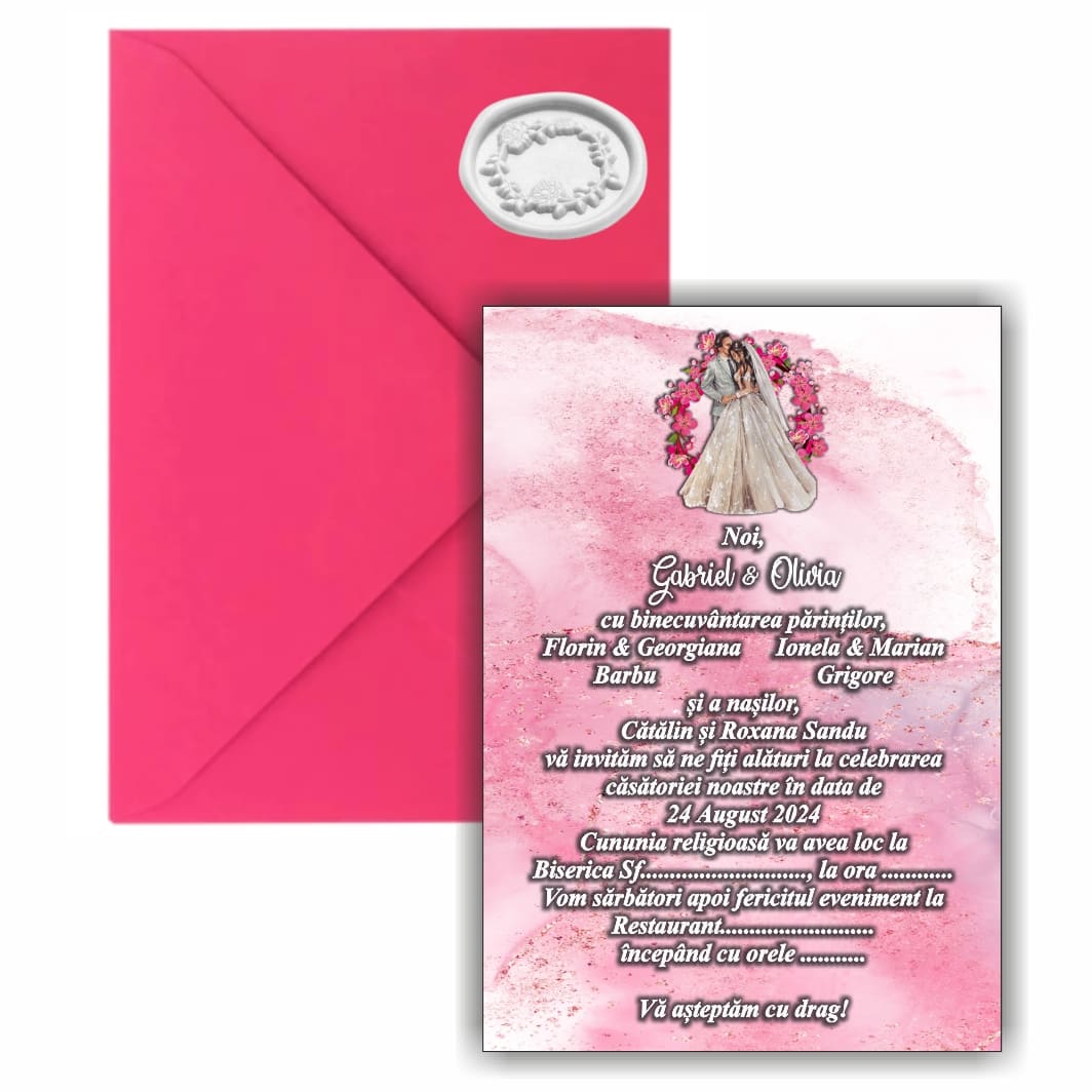 Invitatie Nunta, A5, Roz, INC004