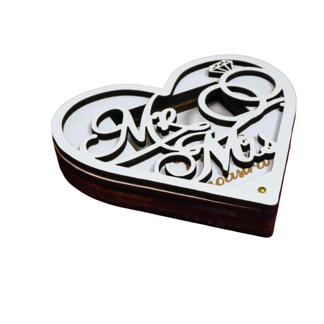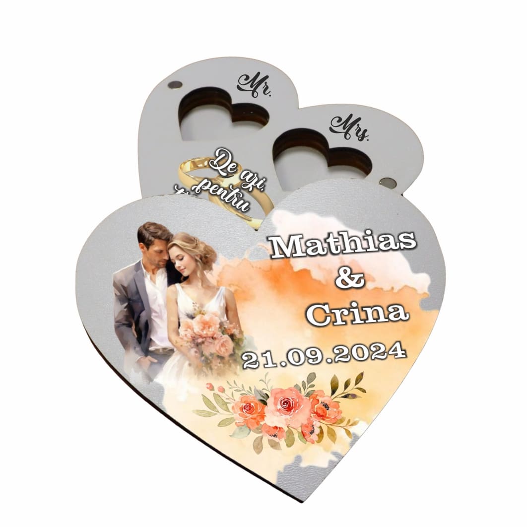Cutie de verighete cu magnet, Personalizata, Inima, Portocalie, Lemn, CTV043
