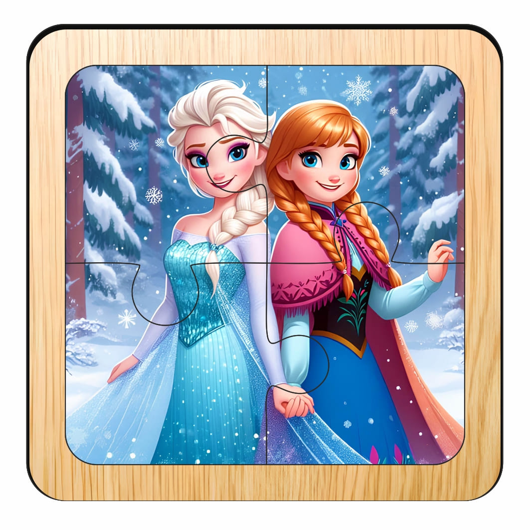 Puzzle din lemn, Elsa, 4 piese, Multicolor, 10×10 cm, PDUV111