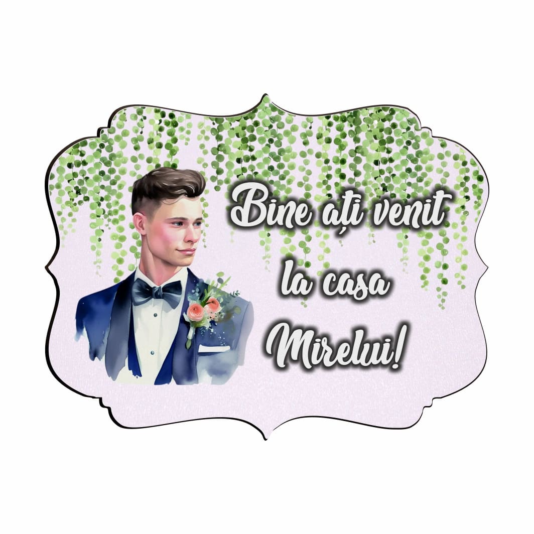 Pancarta Bine Ati Venit la casa Mirelui, Nunta, Verde, 40x31cm, PBUV014