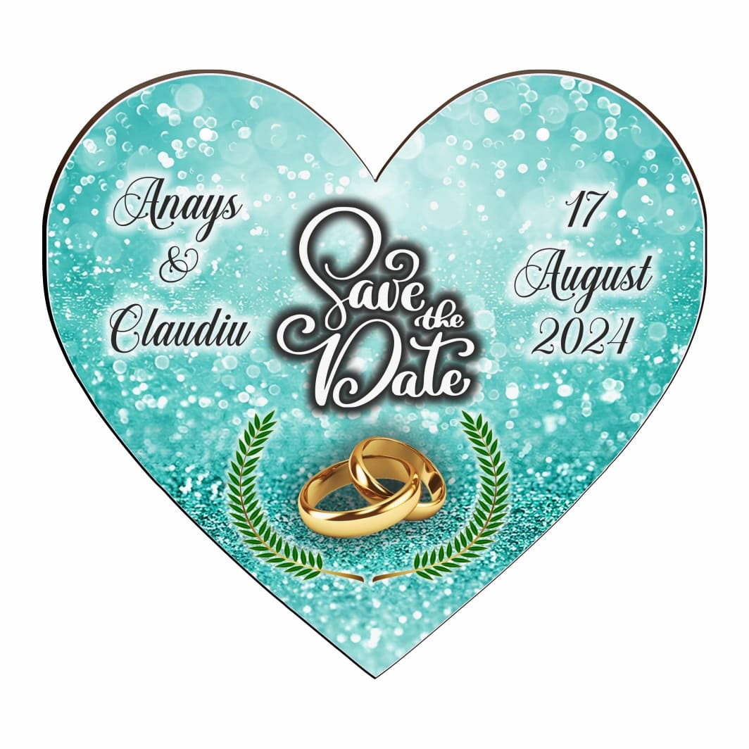 Pancarta Save The Date, Nunta, Verde, Turcoaz, Inima, 30x28cm, PSDUV003