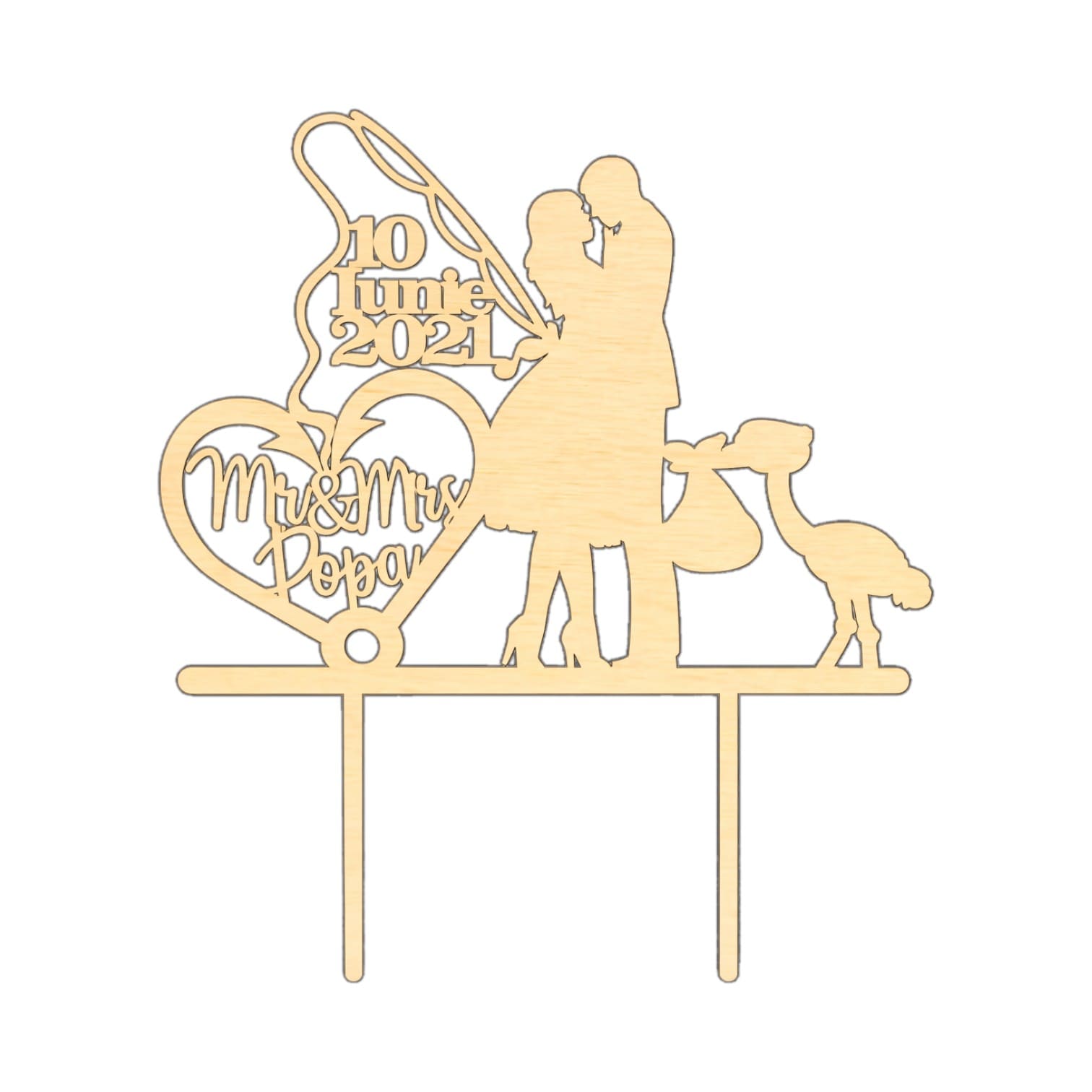 Topper de Nunta, Model TN028, Lemn, 15 cm