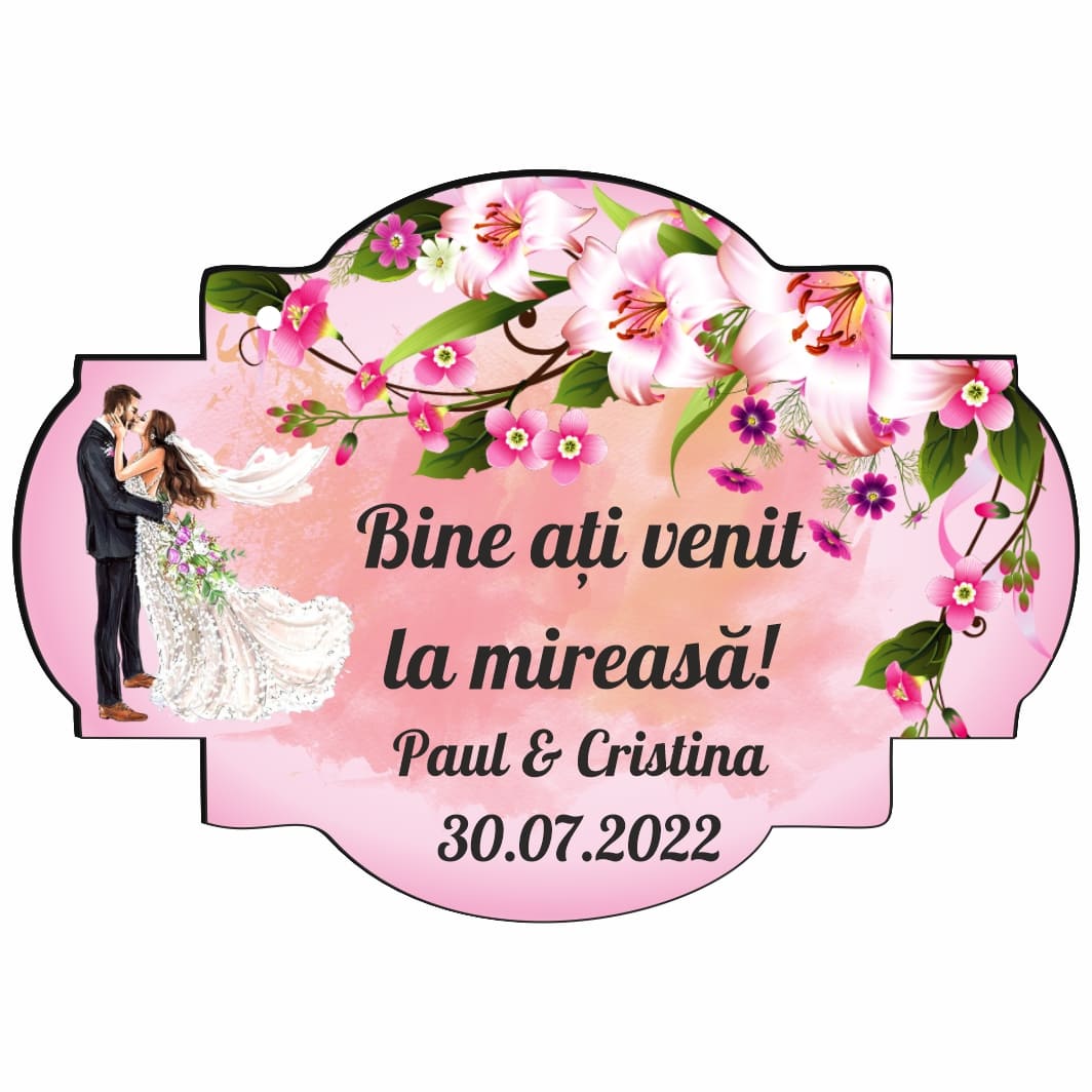 Pancarta Bine Ati Venit la Mireasa, Nunta, Roz, 40x31cm, PBUV037