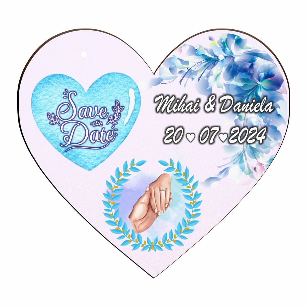 Pancarta Save The Date, Nunta, Albastru, Inima, 30x28cm, PSDUV004