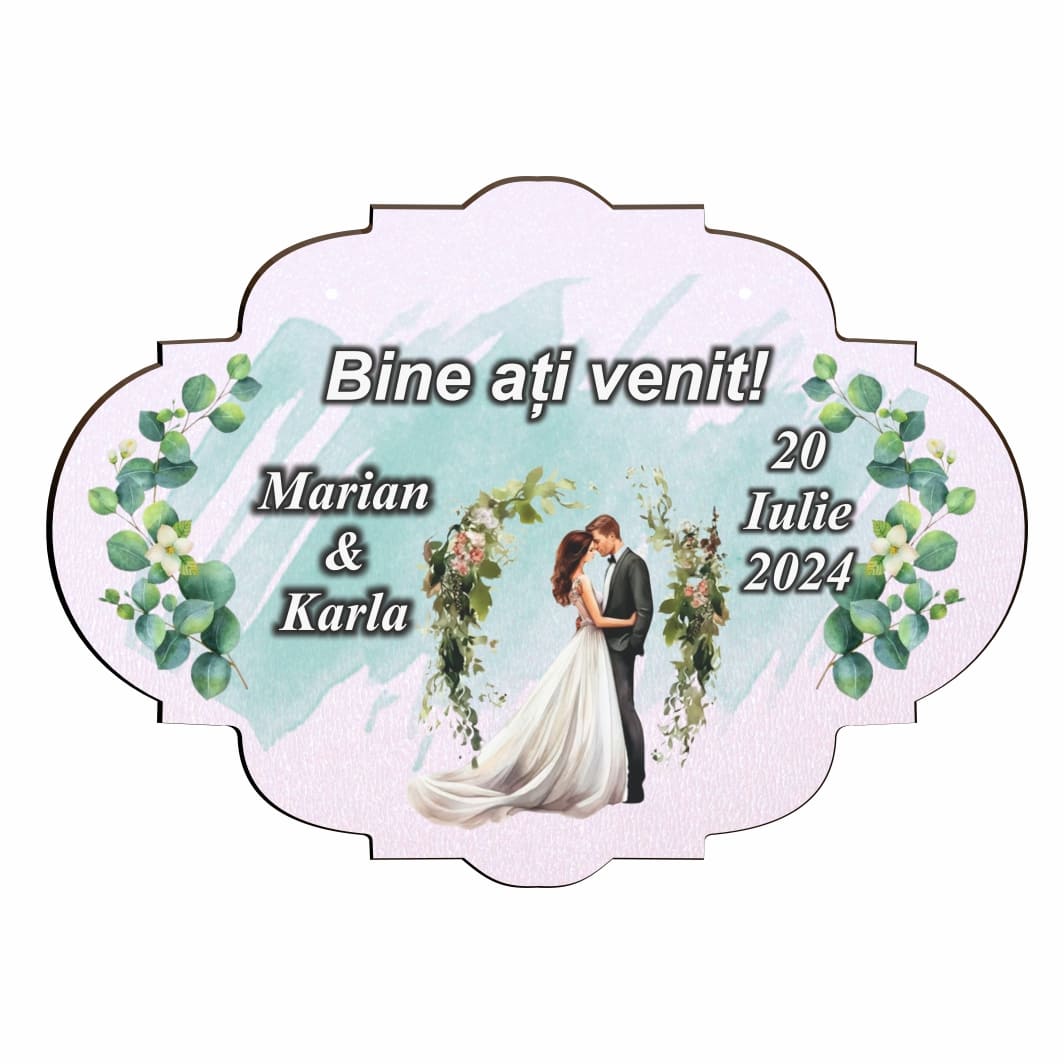 Pancarta Bine Ati Venit, Personalizata, Nunta, Verde, 40x31cm, PBUV029