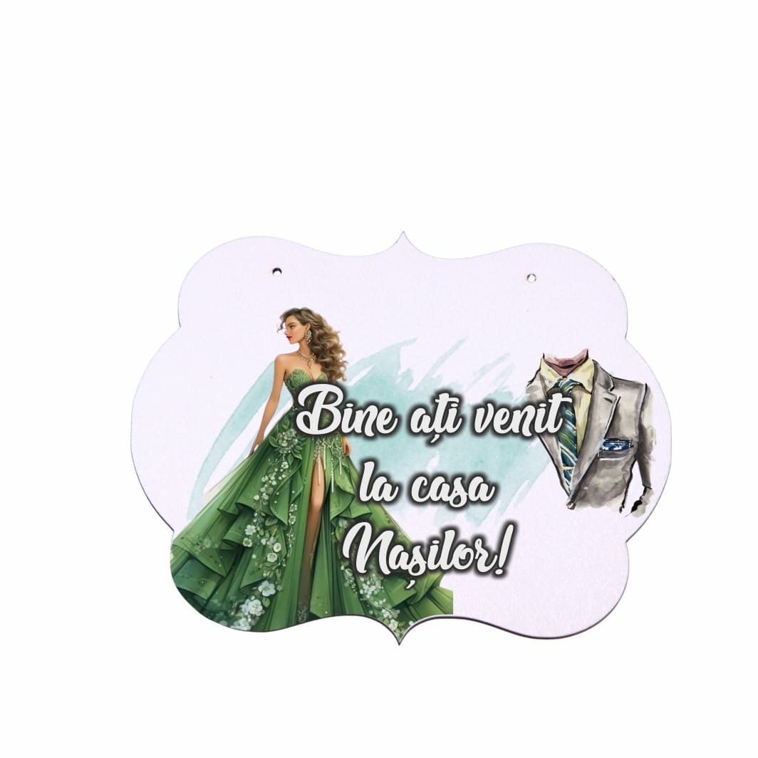 Pancarta Bine Ati Venit la casa Nasilor, Nunta, Verde, 40x31cm, PBUV012