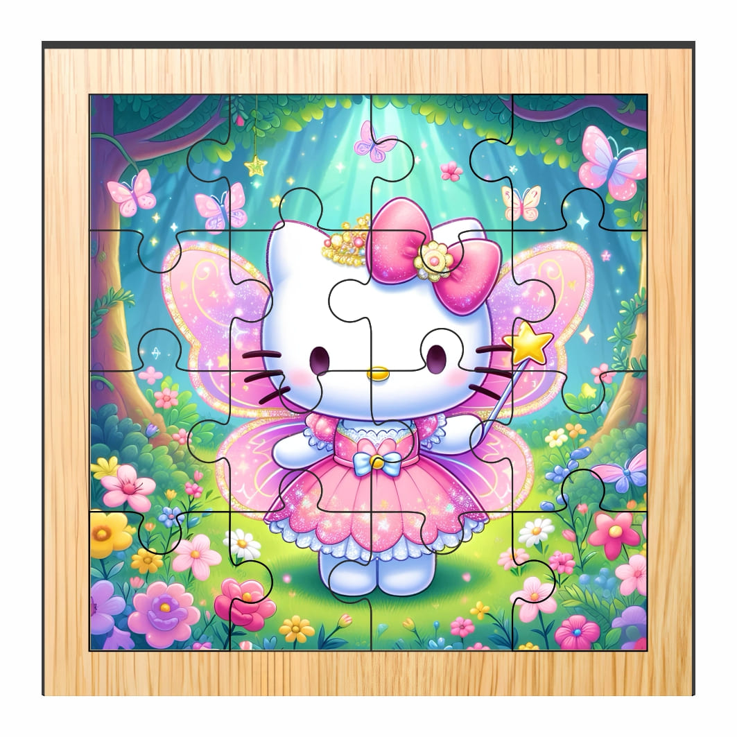 Puzzle din lemn, Hello Kitty, 16 piese, Multicolor, 17×17 cm, PDUV023