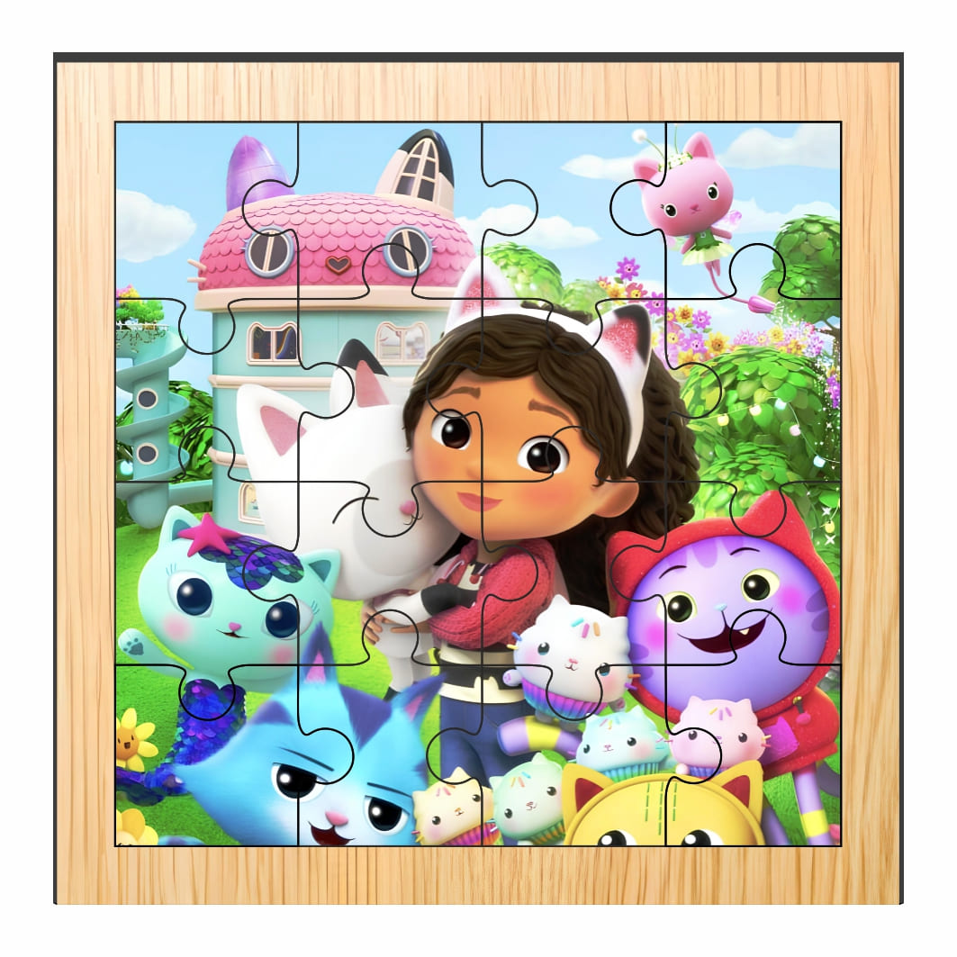 Puzzle din lemn, Gabby’s Dollhouse, 16 piese, Multicolor, 17×17 cm, PDUV050