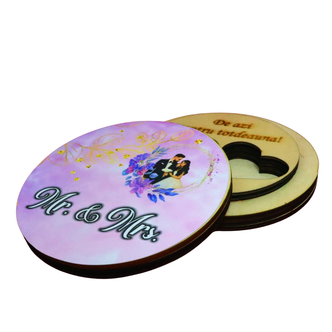 Cutie de verighete, Rotunda, Mov, Lemn natur, CTV032