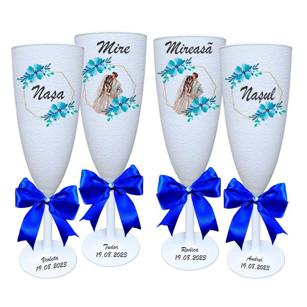 Set 4 Pahare Personalizate, Nunta, Miri, Nasi, Alb, PHRP035