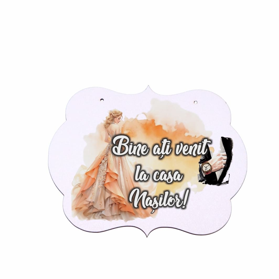 Pancarta Bine Ati Venit la casa Nasilor, Nunta, Portocaliu, 40x31cm, PBUV003