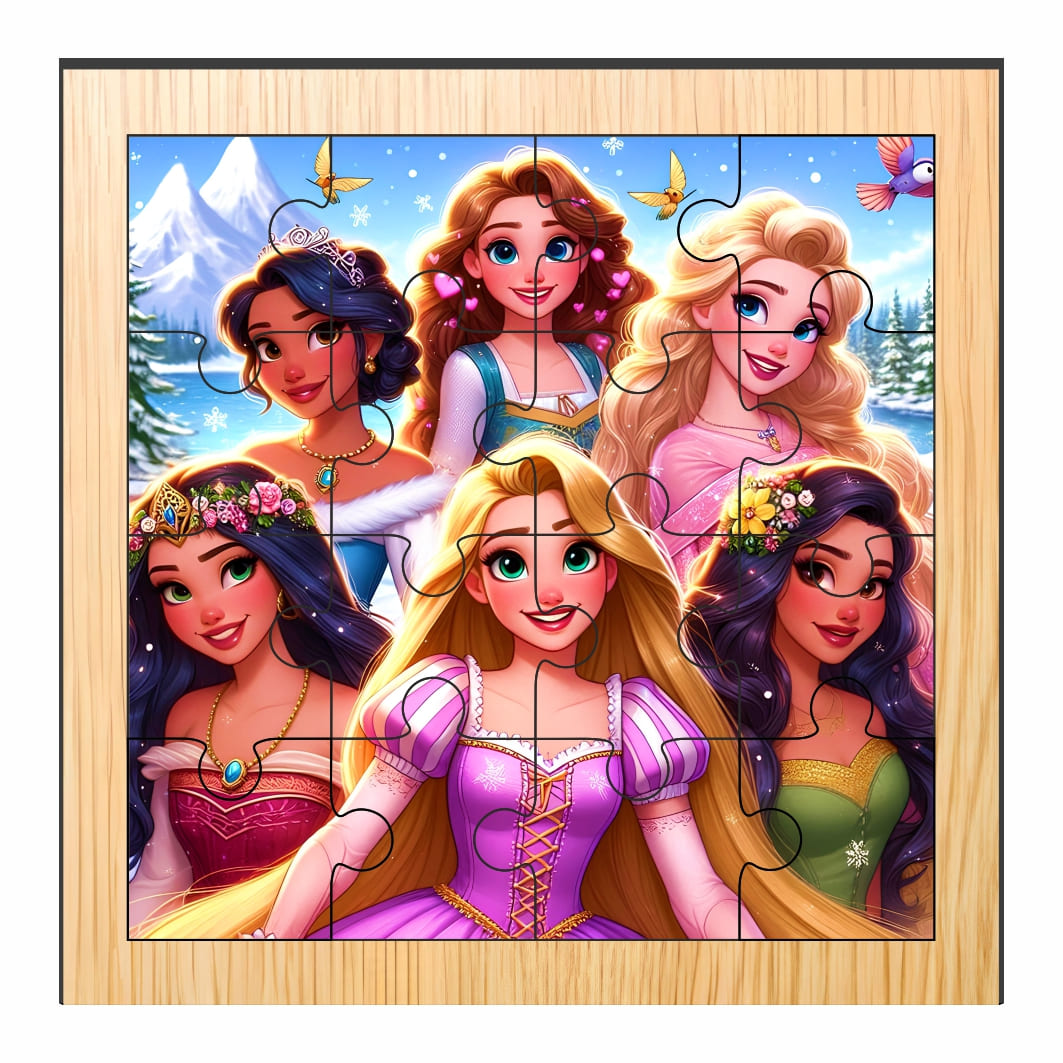 Puzzle din lemn, Printese, 16 piese, Multicolor, 17×17 cm, PDUV010