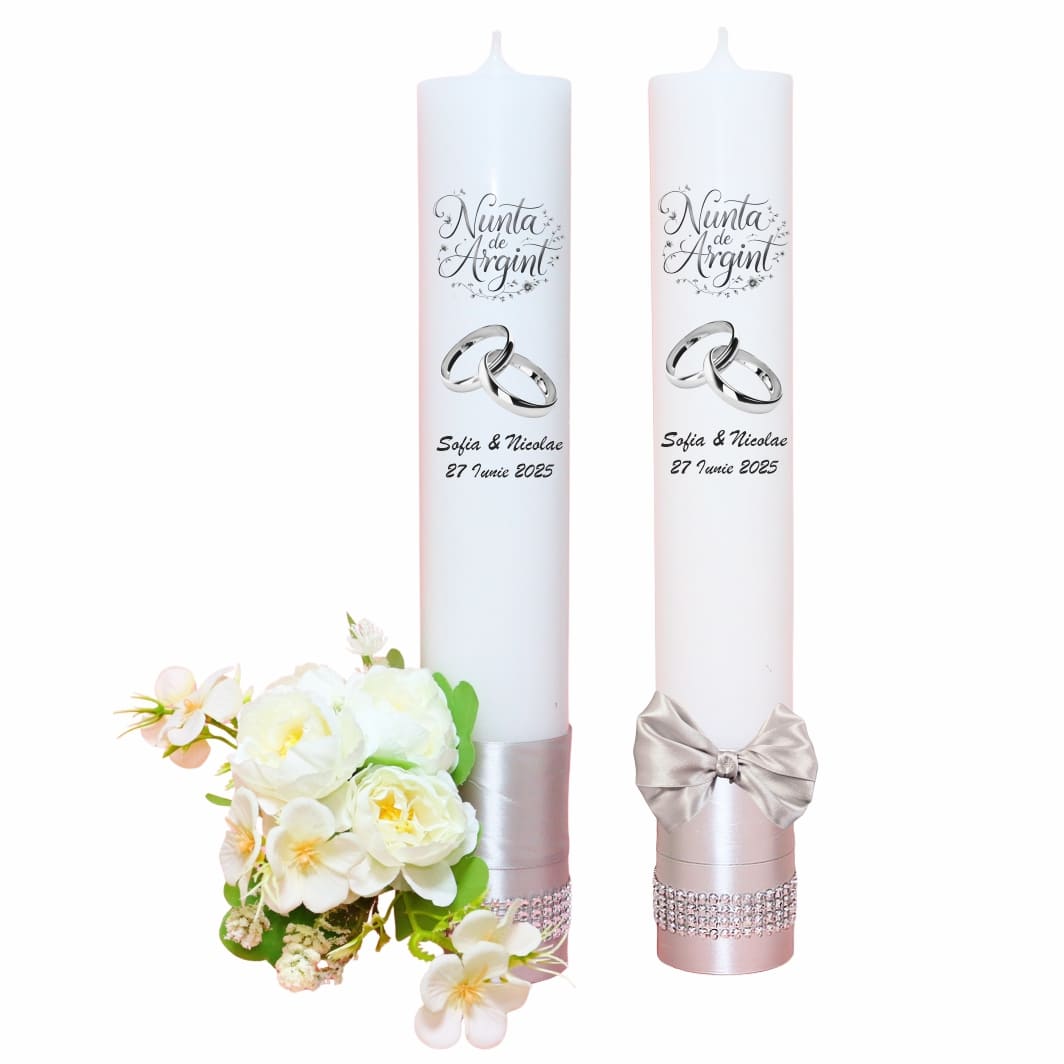 Set Lumanari, Nunta de Argint, Personalizate, 2 Bucati, Argintiu, 35 cm, LNAG002