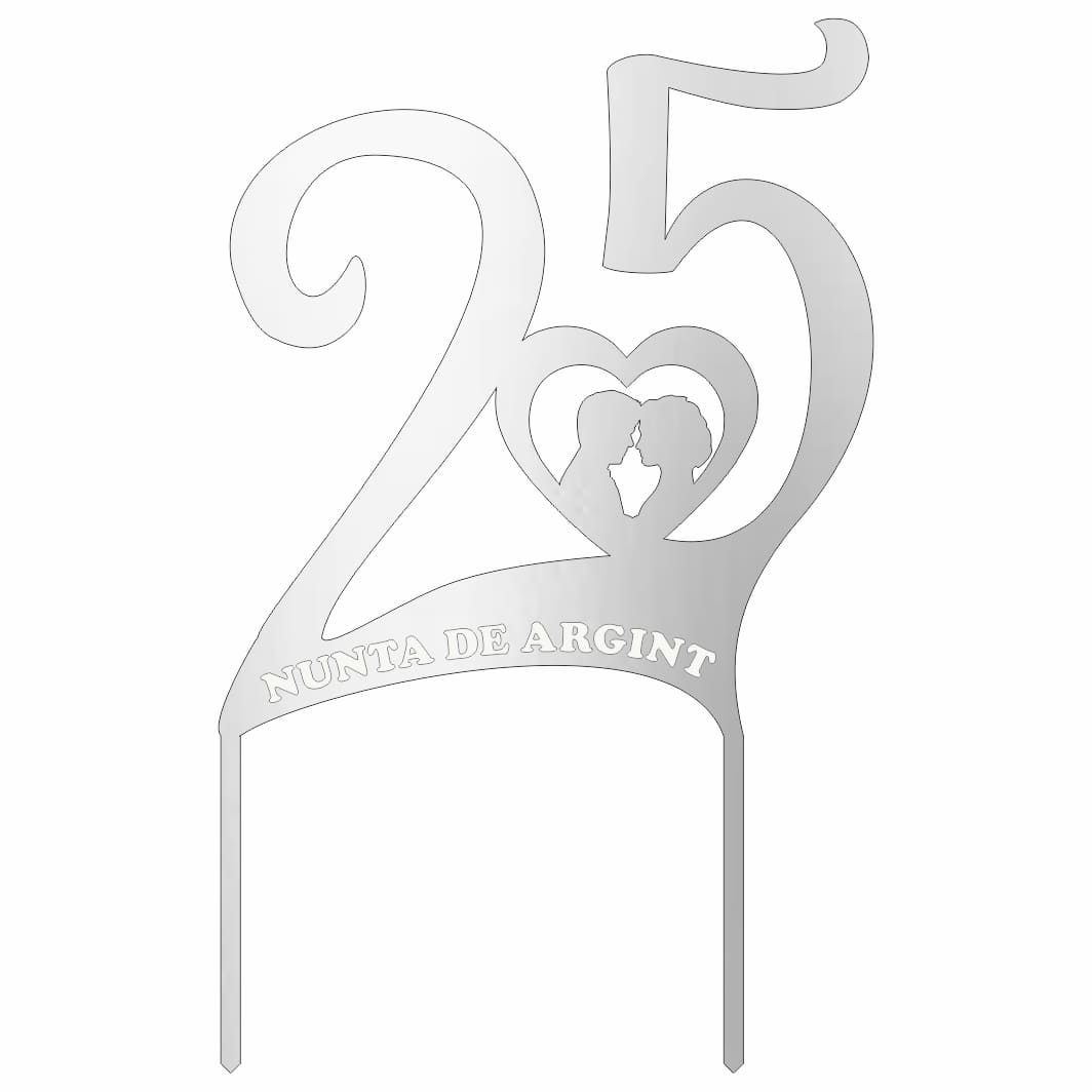Topper, Nunta de Argint, Plexiglas Argintiu Oglinda, 15 cm, TN042