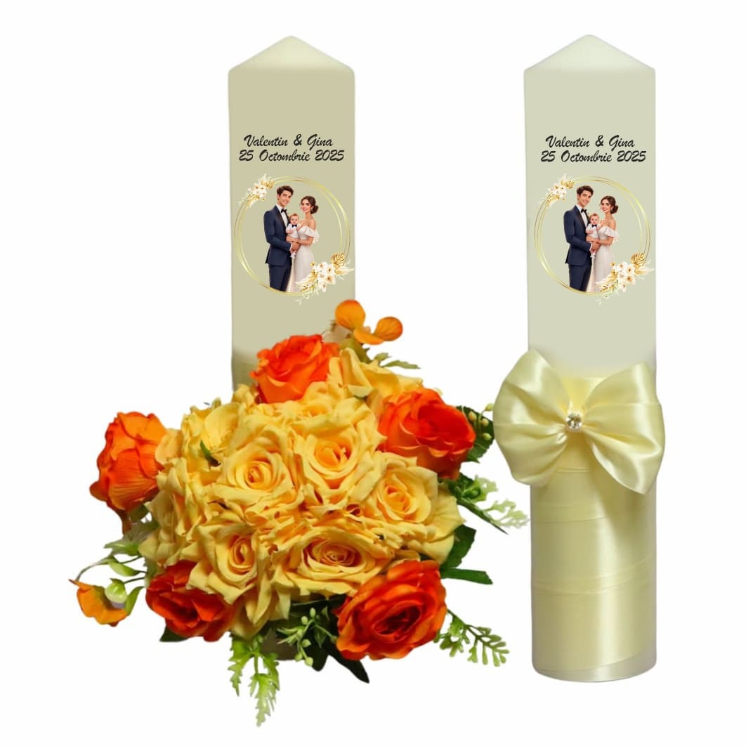 Set Lumanari Nunta, Personalizate, Mire Mireasa, 2 Bucati, Crem, 35 cm, LN029