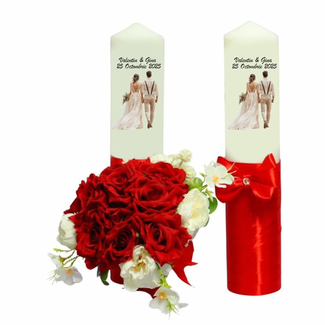 Set Lumanari Nunta, Personalizate, Mire Mireasa, 2 Bucati, Rosu, 35 cm, LN038
