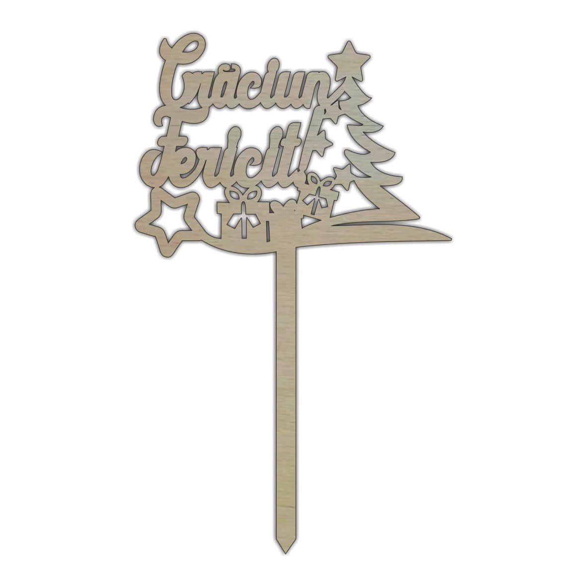 Topper de Craciun/Anul Nou, Model TC001, Lemn, 10-15 cm