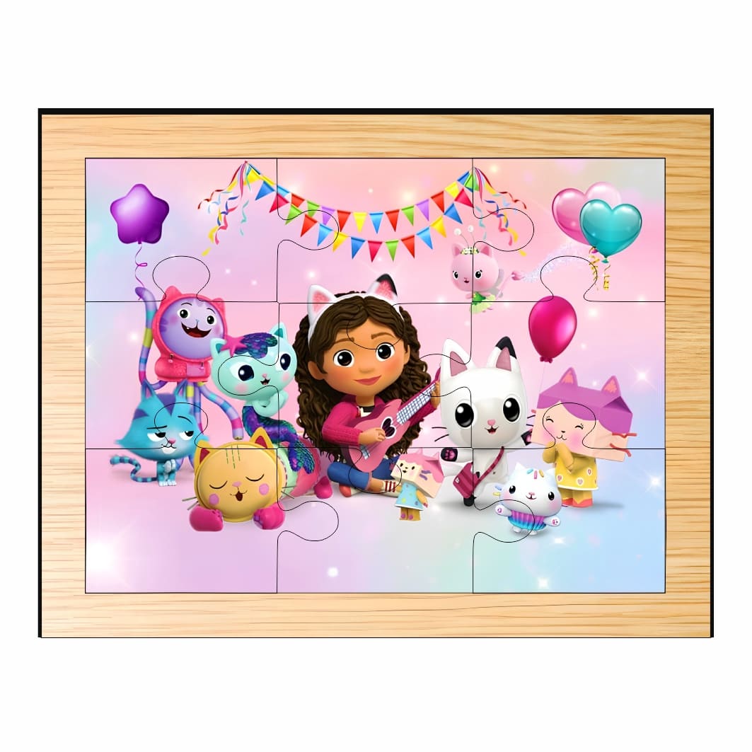 Puzzle din lemn, Gabby’s Dollhouse, 9 piese, Multicolor, 15×12 cm, PDUV088