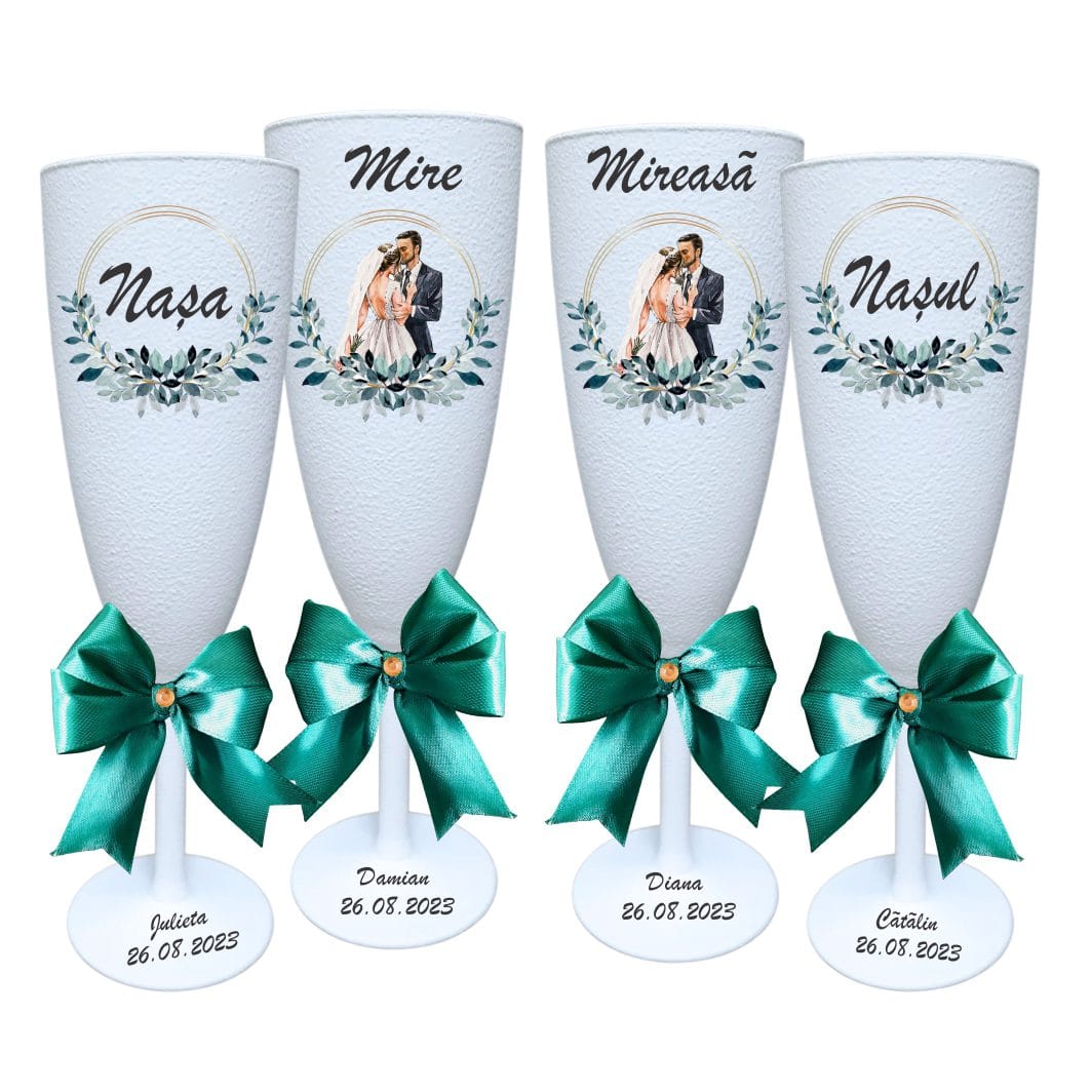 Set 4 Pahare Personalizate, Nunta, Miri, Nasi, Alb, PHRP039