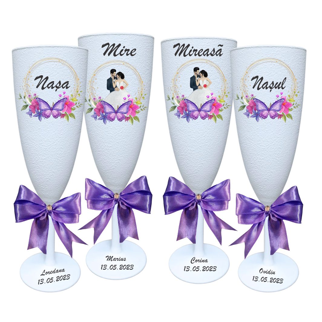 Set 4 Pahare Personalizate, Nunta, Miri, Nasi, Alb, PHRP031