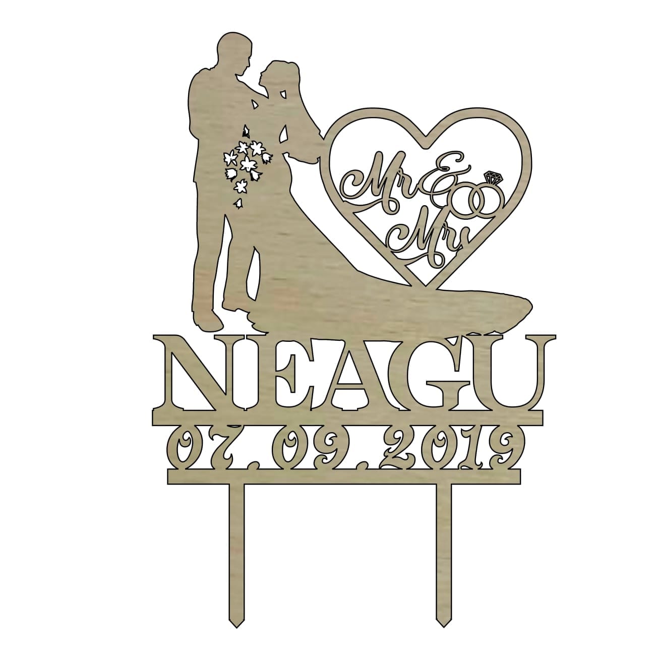 Topper de Nunta, Model TN008, Lemn, 15 cm