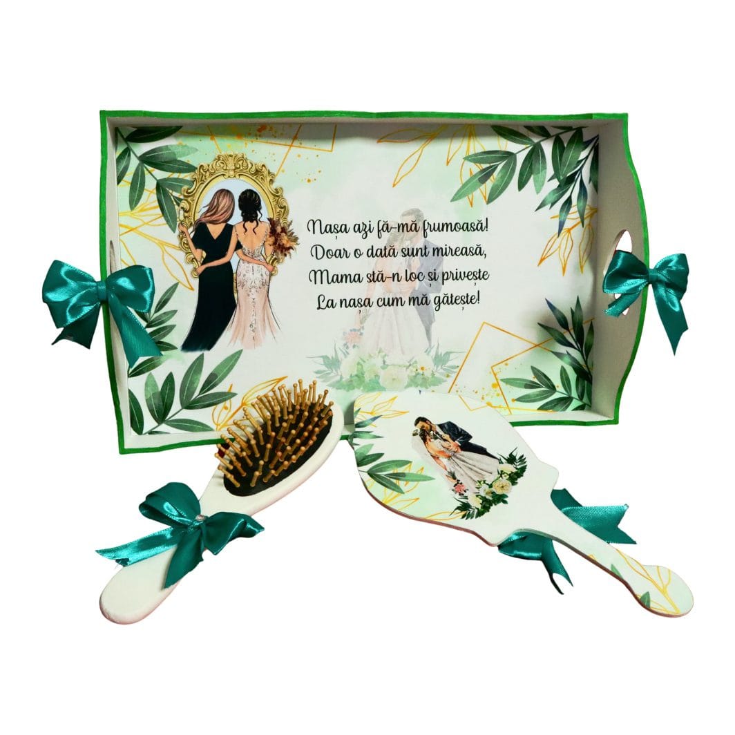 Set Gatitul Miresei, Nunta, 3 Piese, Lemn, Verde, 22x35cm, SGMRSD006