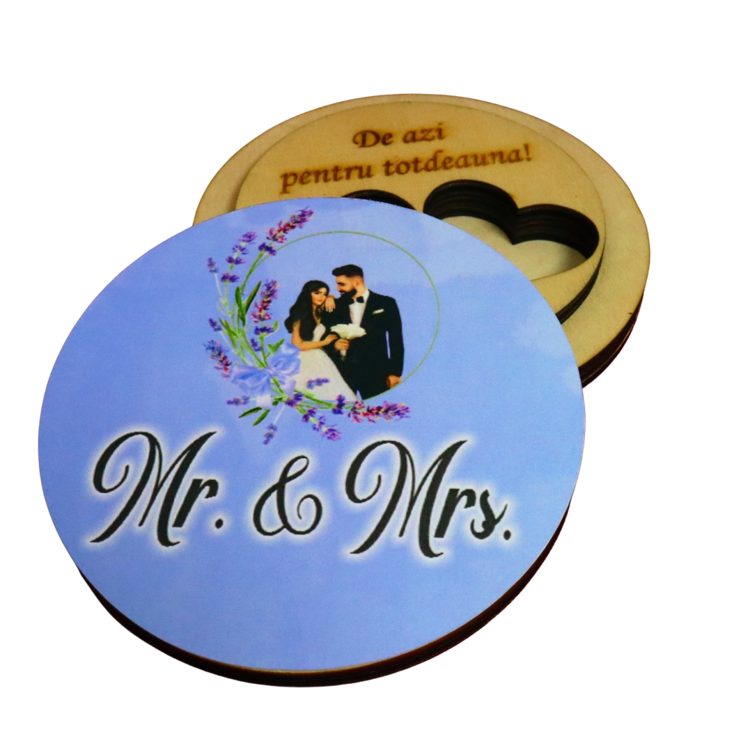 Cutie de verighete, Rotunda, Mov, Lemn natur, CTV028