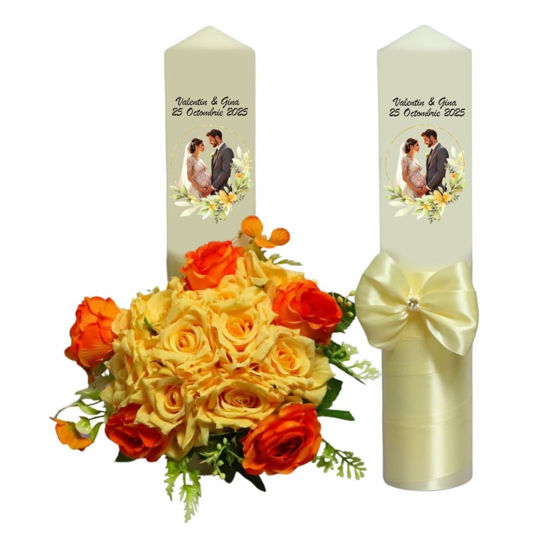 Set Lumanari Nunta, Personalizate, Mire Mireasa, 2 Bucati, Crem, 35 cm, LN031