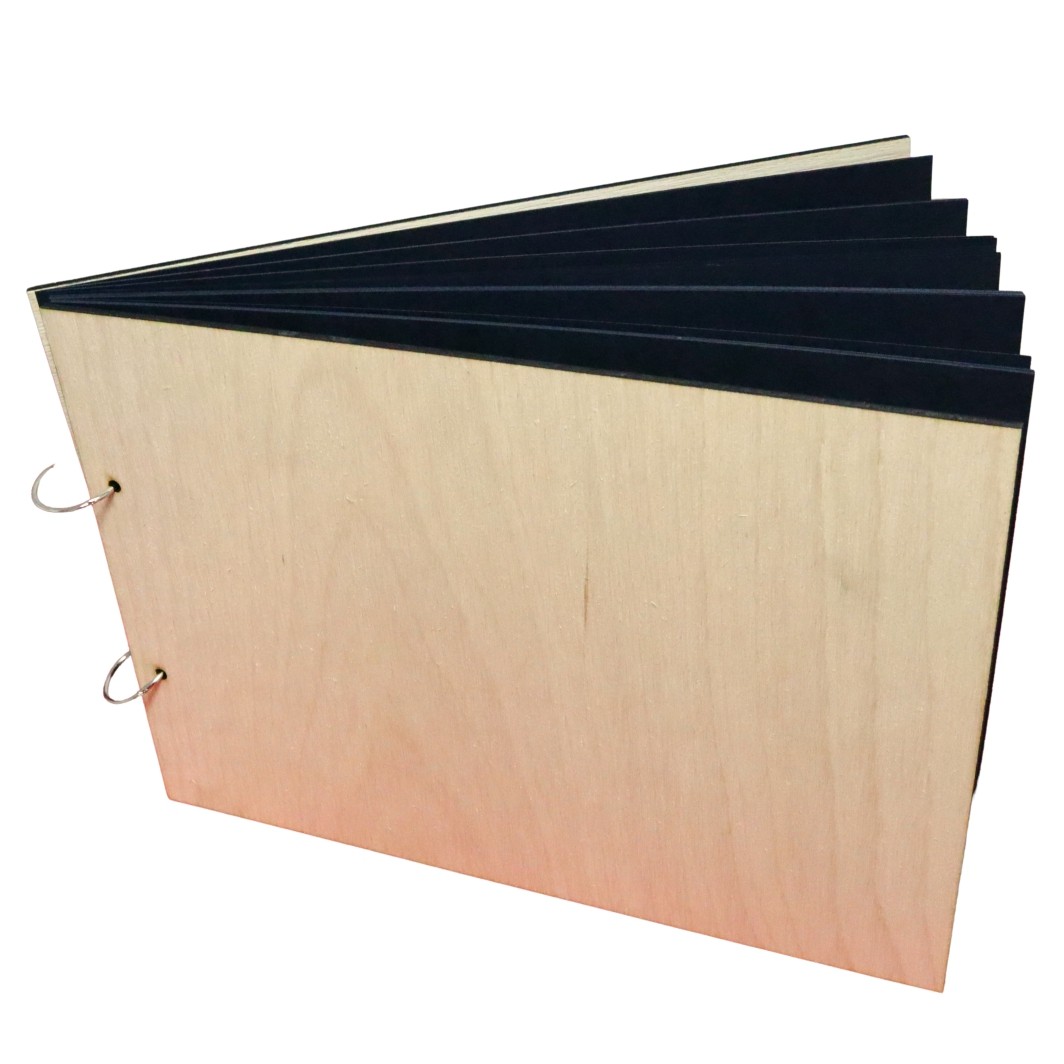 * Pachetul contine 2 coperti din lemn, 2 inele tip balama si 30 de foi negre cartonate .