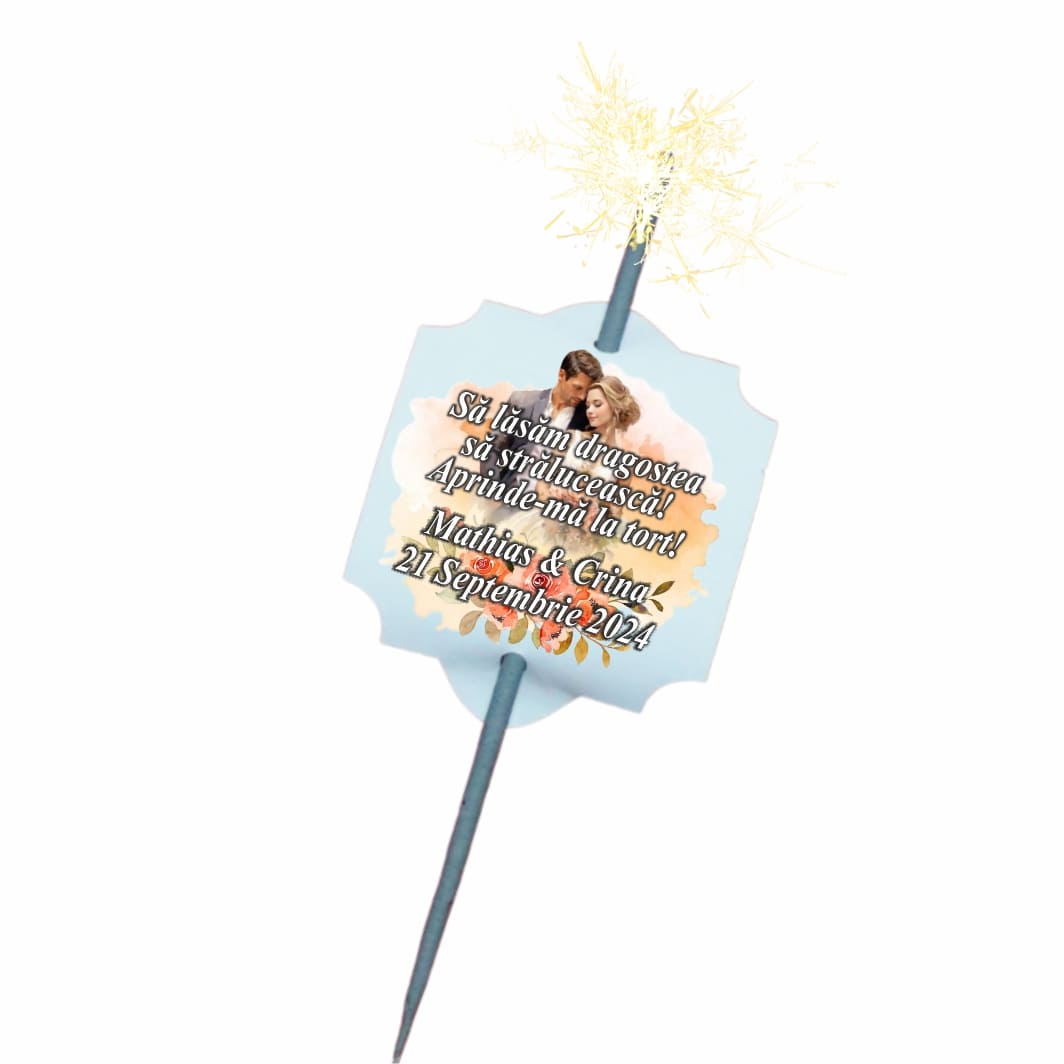 Fii primul care scrii o recenzie pentru „Artificie de Mana Nunta, Aprinde-ma la tort, Personalizat, Portocaliu, 25cm, AN09”