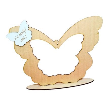 Suport Glob Floral tip Fluture, Blank, Lemn Natur, 33x25cm, SPG004