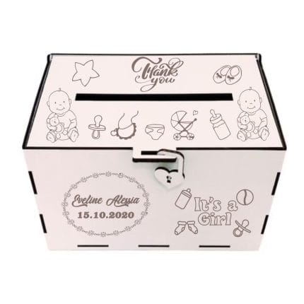 Cutie de bani pentru botez, Lemn, 30x20x20 cm, Alb, It’s a girl