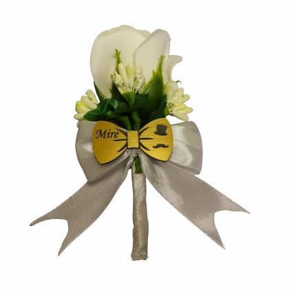 Cocarde Nunta, Model Papion Floral, Trandafir, Auriu-Alb, CFL017