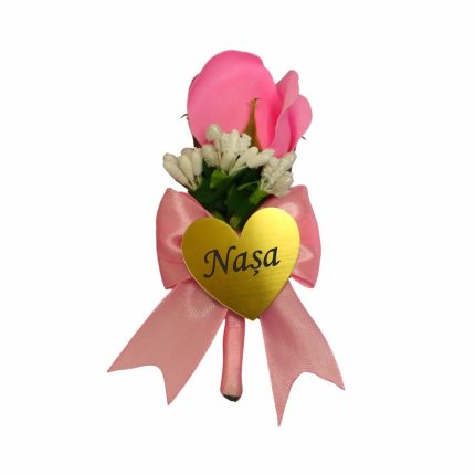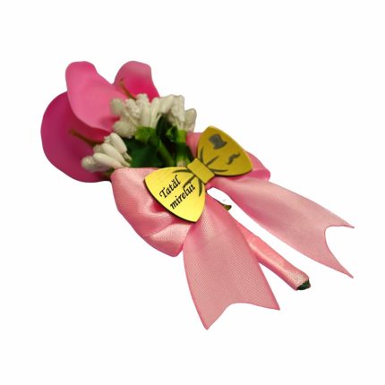 Cocarde Nunta, Model Papion Floral, Trandafir, Auriu-Roz Fucsia, CFL023